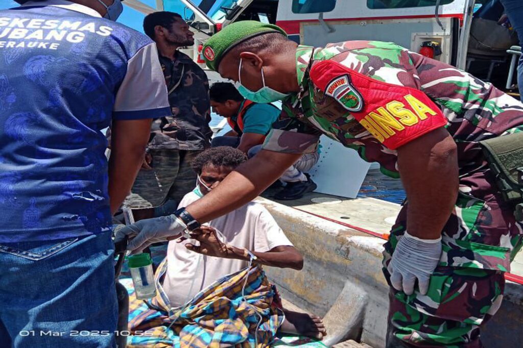 MERAUKE, – Wujud kepedulian dan kemanunggalan TNI dengan rakyat kembali terlihat saat Babinsa Pos Ramil Tubang Koramil 1707-03/Okaba, Serka Derek Y.R., bersama tenaga medis Puskesmas Tubang berjibaku mengevakuasi seorang pasien kritis dari Kampung Dodalim menuju RSUD Merauke, meskipun harus menempuh perjalanan panjang melalui jalur sungai dan udara.