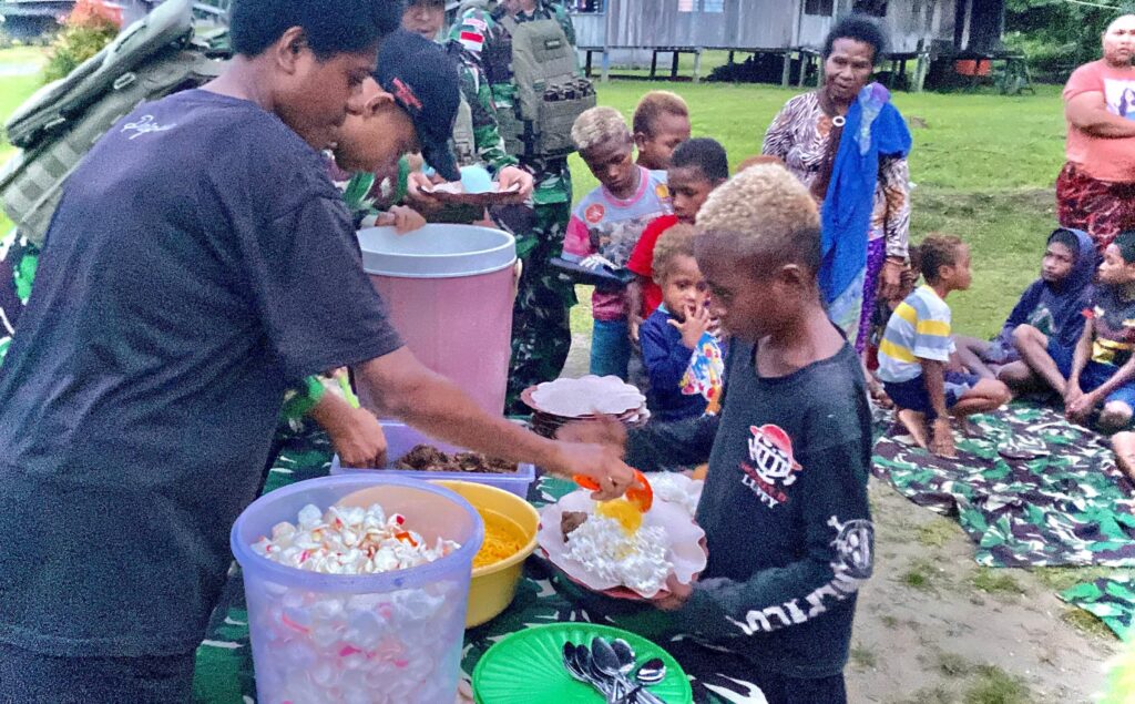 Makan Bersama Masyarakat Perbatasan, Wujud Kedekatan Satgas Yonif 131/Brajasakti Dengan Masyarakat Papua